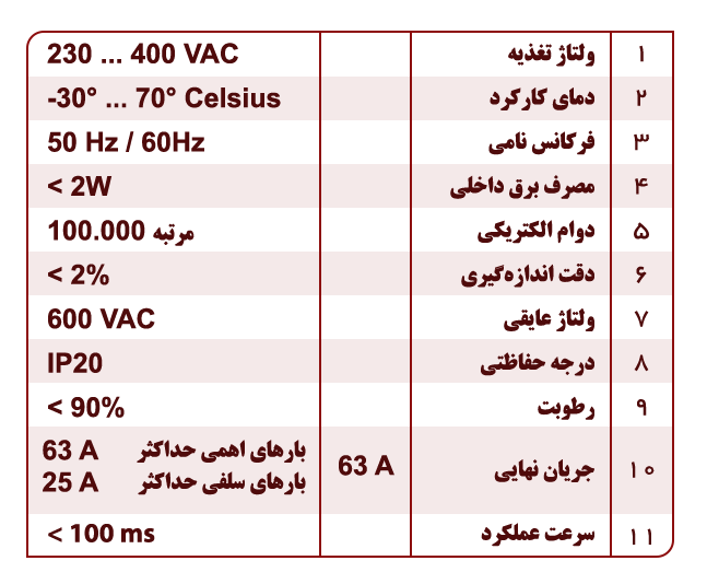 - رله داخلی 63 آمپری مناسب جهت انواع انشعابات کنتوری 25 و 32 آمپری
